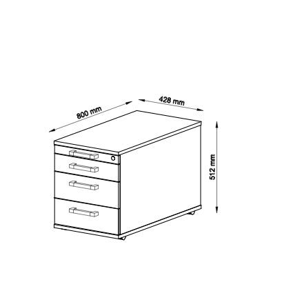 Mit seinen Massen von 512 × 428 × 800 mm (H × B × T) bietet der MC Standcontainer grosszügigen Stauraum und lässt sich hervorragend mit weiteren MC Büromöbeln kombinieren. Die Lieferung erfolgt montiert in einer Kartonschachtel, lediglich die Griffe müssen noch angebracht werden.