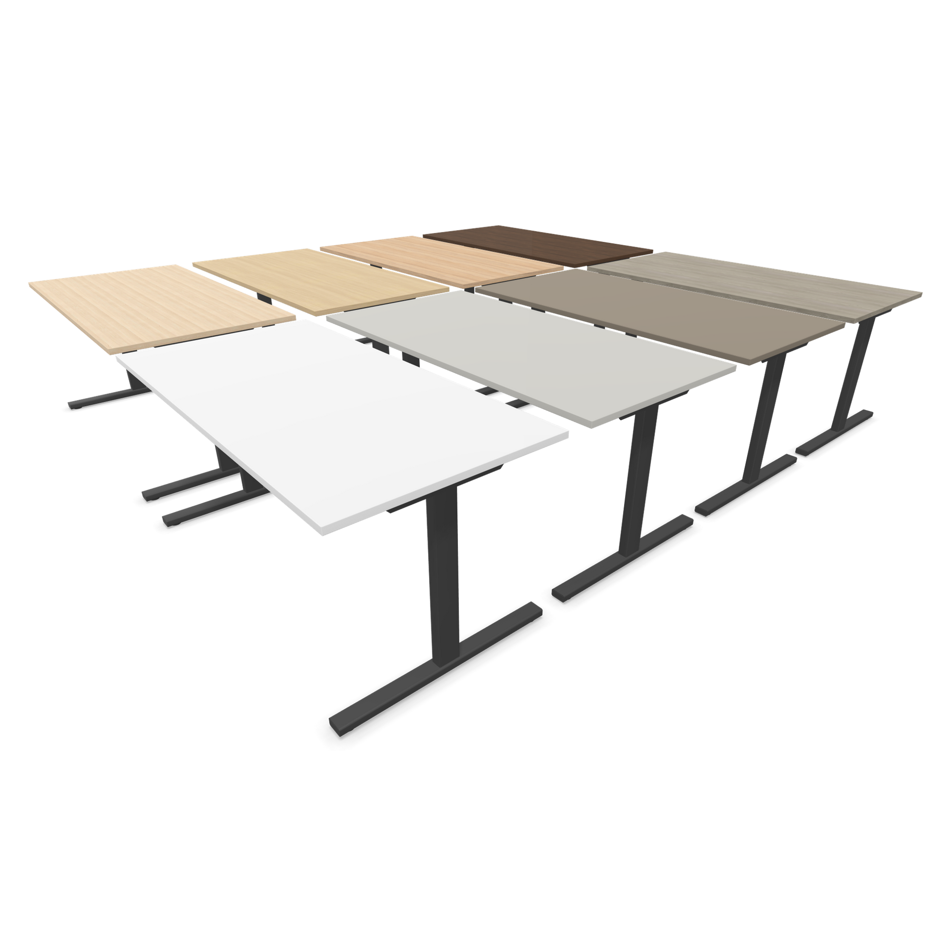 Entdecke Schreibtische mit verschiedenen Gestellformen – von klassischem 4-Fuss bis modernem T-Fuss-Design.