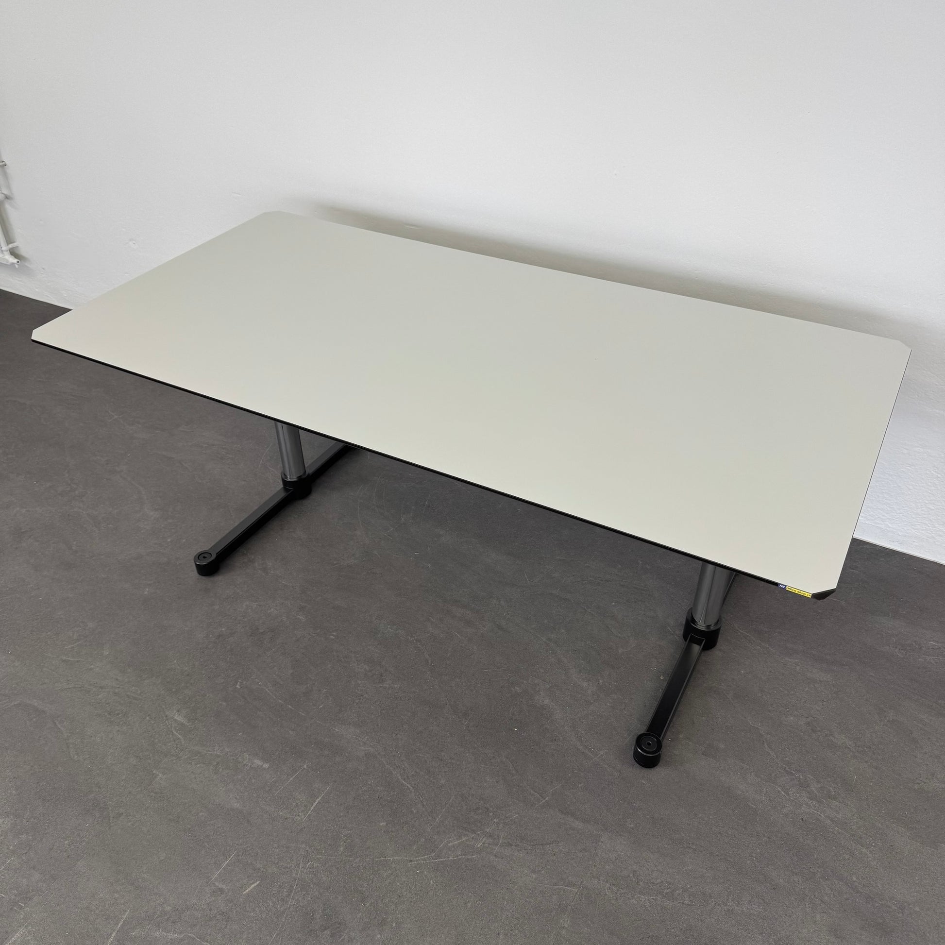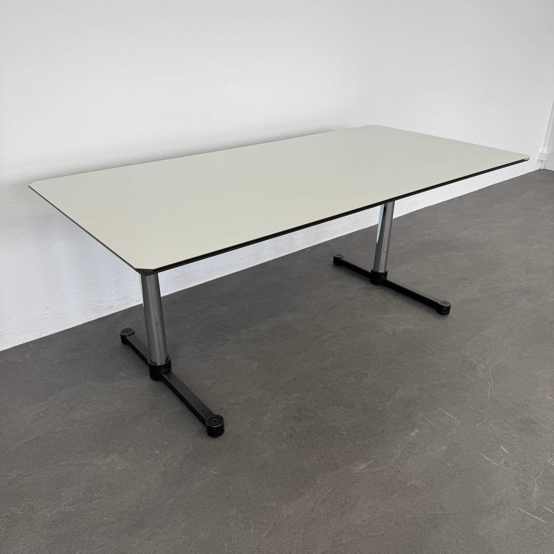 USM Haller Kitos Tisch – Mit robustem Gestell und hochwertiger Linoleum-Oberfläche in Weiss bietet er eine elegante und langlebige Arbeitslösung. Perfekt für moderne Büros oder Home-Office.